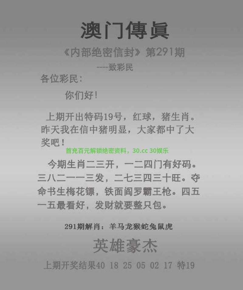 296期精准内幕【传真一头】赢钱料