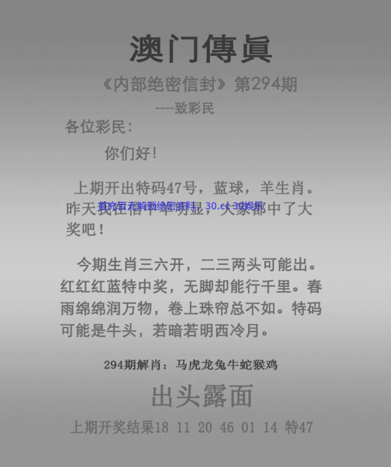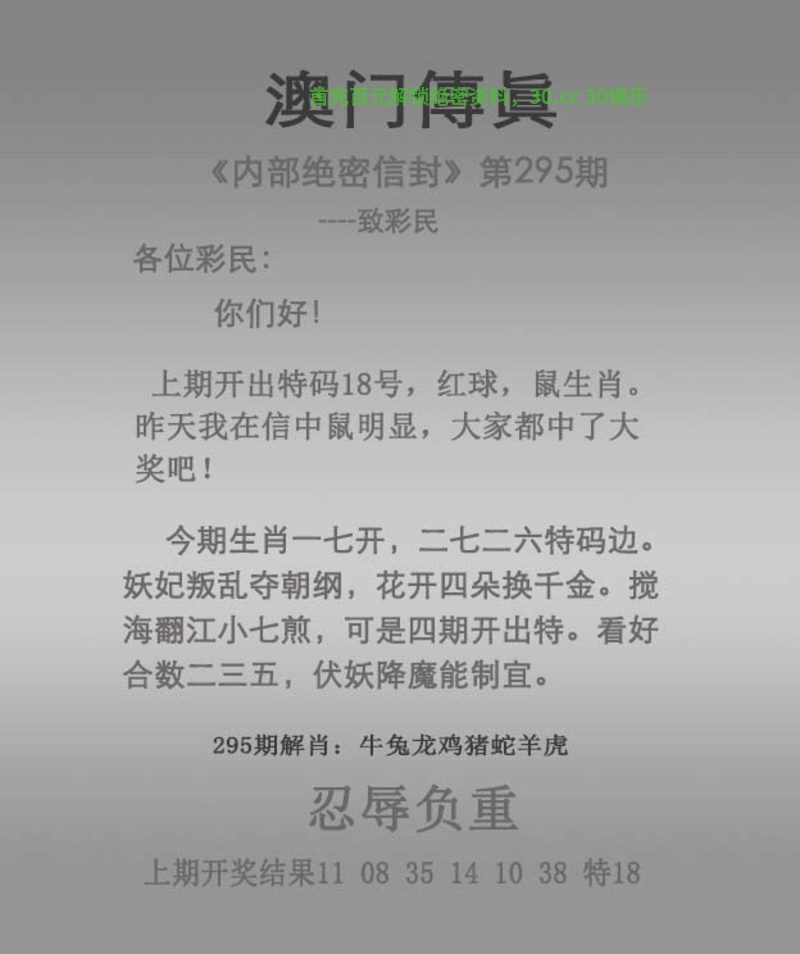 294期:绝杀三肖【龙兔狗】开:鼠18准